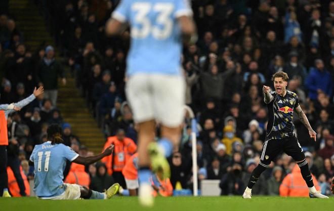 随后登场的曼城,比赛踢得更具戏剧性。上半场对决,主场作战的蓝月军团早早就取得了两球的领先,将比赛的主动权牢牢握在了自己手里。然而令所有人都没有想到的是,易边再战后,他们的后卫却突然断电。先是努内斯后场连续两次失误,让利兹联迫近了比分,随后格瓦迪奥尔又鲁莽地在禁区内犯规,送给了对手一粒点球。恩梅加的点球虽然被多纳鲁马扑出,但是他机敏地补射得手,利兹联在很短时间内就将比分扳为了2-2!