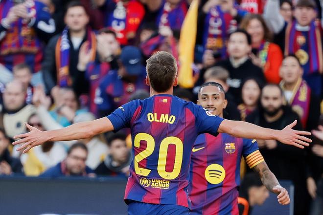 西甲巴萨这边也遇到了开场闪击的进球,但丢球的一方却是巴萨;阿拉维斯开场43秒角球进攻率先破门。第7分钟拉菲尼亚左路倒三角横传,奥尔莫将球漏过,亚马尔后点抽射将比分扳平吹响了反击号角;第26分钟还是拉菲尼亚左路组织的进攻,奥尔莫中路包抄撞射成功反超比分。之后的比赛巴萨牢牢占据场上优势,直到临近比赛结束前,亚马尔助攻奥尔莫再下一城,巴萨3:1取胜;反超皇马2分来到西甲榜首。